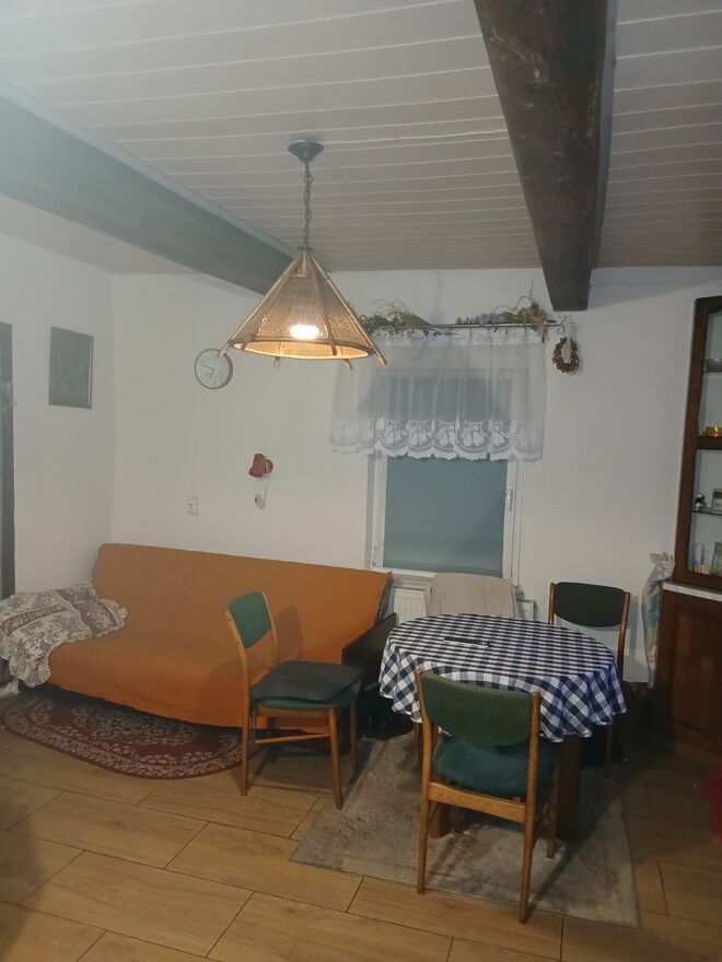 Na sprzedaż uroczy dom położony w spokojnej okolicy,obok płynie rzeczka Szeszupa, z dala od zgiełku i ruchliwych dróg – idealne miejsce dla osób ceniących ciszę i kontakt z naturą.Układ pomieszczeń: